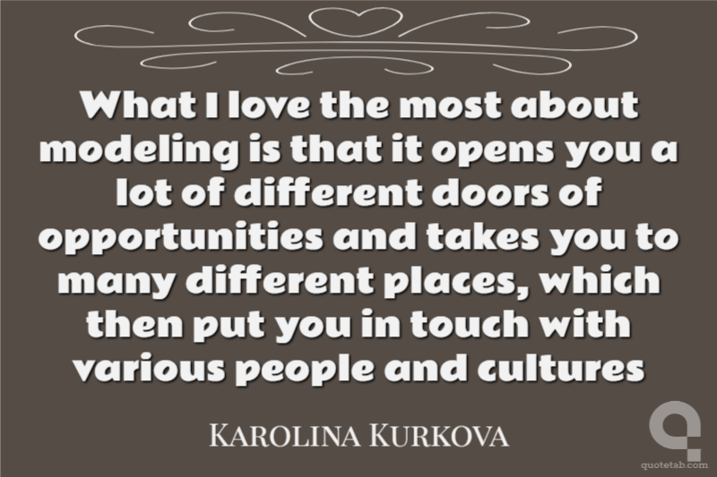 What I love the most about modeling is that it opens you a lot of different doors of opportunities and takes you to many different places, which then put you in touch with various people and cultures