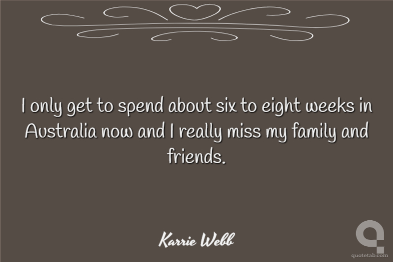 I only get to spend about six to eight weeks in Australia now and I really miss my family and friends.
