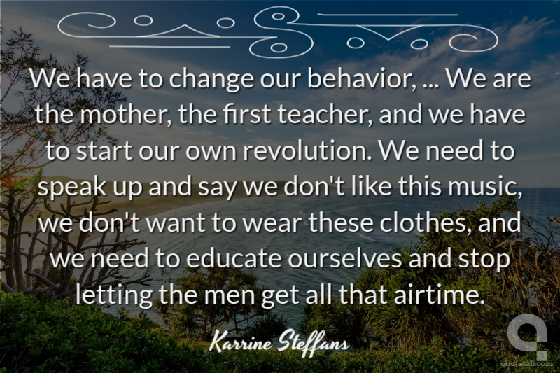 We have to change our behavior, ... We are the mother, the first teacher, and we have to start our own revolution. We need to speak up and say we don't like this music, we don't want to wear these clothes, and we need to educate ourselves and stop letting the men get all that airtime.
