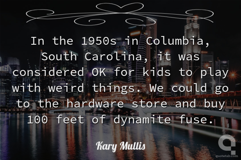 In the 1950s in Columbia, South Carolina, it was considered OK for kids to play with weird things. We could go to the hardware store and buy 100 feet of dynamite fuse.