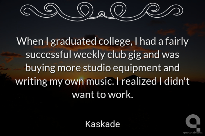 When I graduated college, I had a fairly successful weekly club gig and was buying more studio equipment and writing my own music. I realized I didn't want to work.