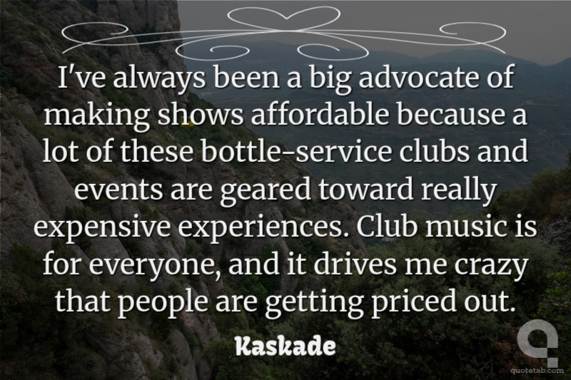 I've always been a big advocate of making shows affordable because a lot of these bottle-service clubs and events are geared toward really expensive experiences. Club music is for everyone, and it drives me crazy that people are getting priced out.
