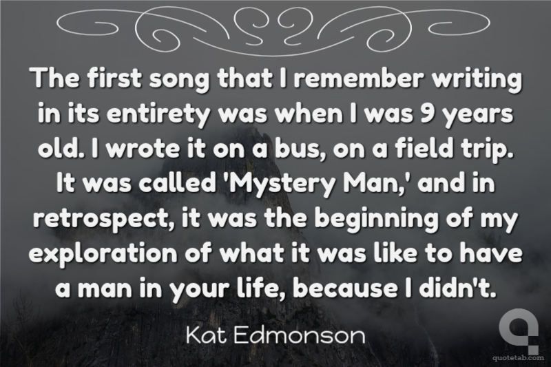 The first song that I remember writing in its entirety was when I was 9 years old. I wrote it on a bus, on a field trip. It was called 'Mystery Man,' and in retrospect, it was the beginning of my exploration of what it was like to have a man in your life, because I didn't.