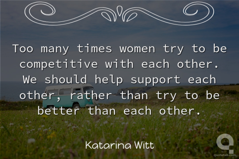 Too many times women try to be competitive with each other. We should help support each other, rather than try to be better than each other.