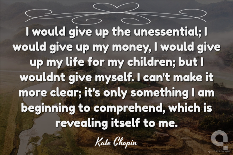 I would give up the unessential; I would give up my money, I would give up my life for my children; but I wouldnt give myself. I can't make it more clear; it's only something I am beginning to comprehend, which is revealing itself to me.