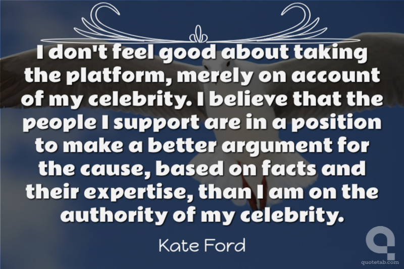 I don't feel good about taking the platform, merely on account of my celebrity. I believe that the people I support are in a position to make a better argument for the cause, based on facts and their expertise, than I am on the authority of my celebrity.