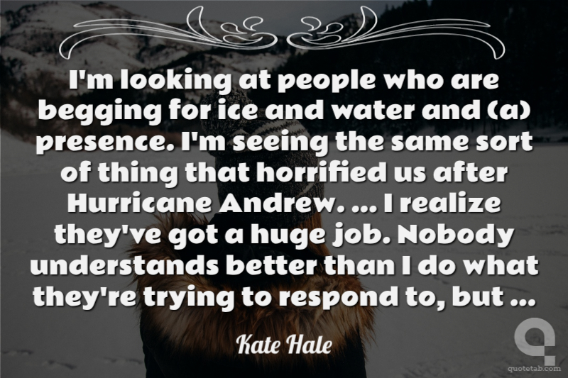 I'm looking at people who are begging for ice and water and (a) presence. I'm seeing the same sort of thing that horrified us after Hurricane Andrew. ... I realize they've got a huge job. Nobody understands better than I do what they're trying to respond to, but ...