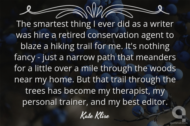 The smartest thing I ever did as a writer was hire a retired conservation agent to blaze a hiking trail for me. It's nothing fancy - just a narrow path that meanders for a little over a mile through the woods near my home. But that trail through the trees has become my therapist, my personal trainer, and my best editor.