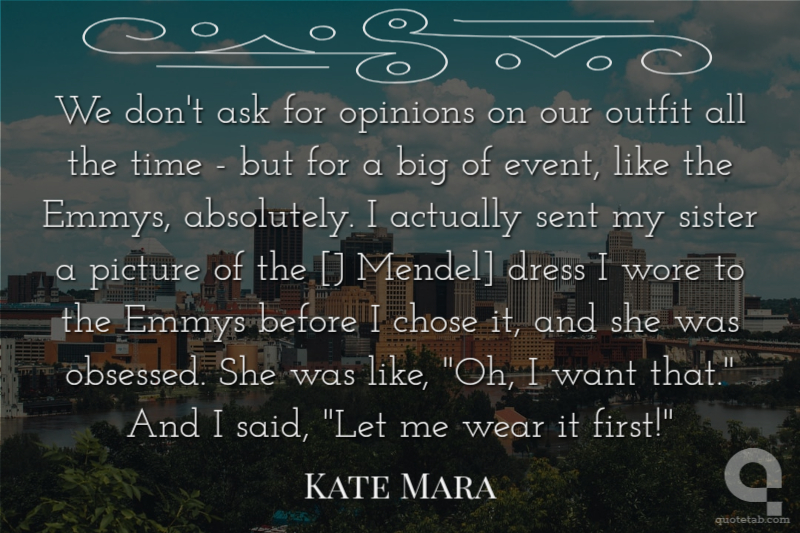 We don't ask for opinions on our outfit all the time - but for a big of event, like the Emmys, absolutely. I actually sent my sister a picture of the [J Mendel] dress I wore to the Emmys before I chose it, and she was obsessed. She was like, "Oh, I want that." And I said, "Let me wear it first!"