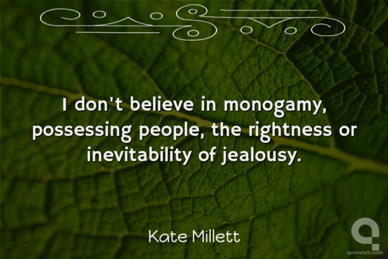 I don't believe in monogamy, possessing people, the rightness or inevitability of jealousy.