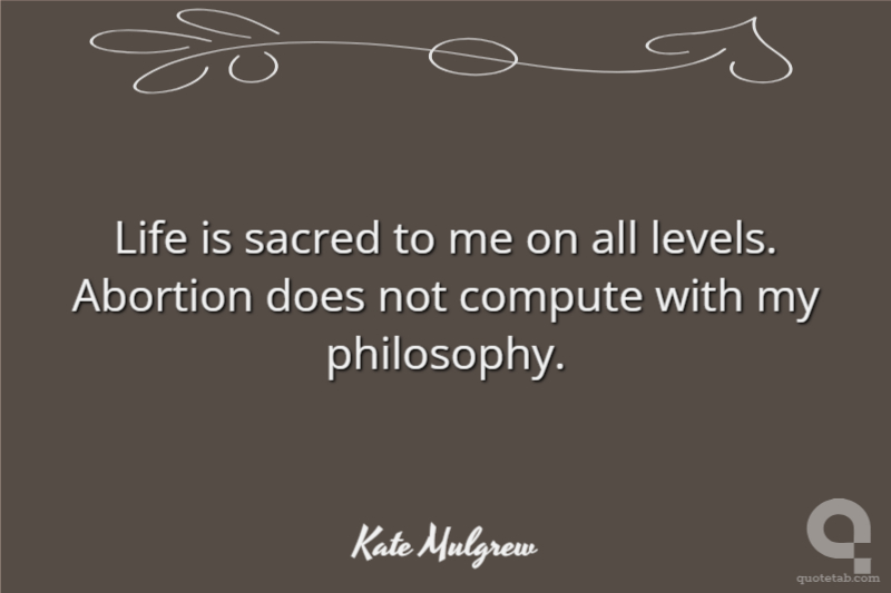 Life is sacred to me on all levels. Abortion does not compute with my philosophy.