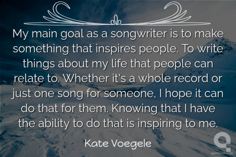 My main goal as a songwriter is to make something that inspires people. To write things about my life that people can relate to. Whether it's a whole record or just one song for someone, I hope it can do that for them. Knowing that I have the ability to do that is inspiring to me.