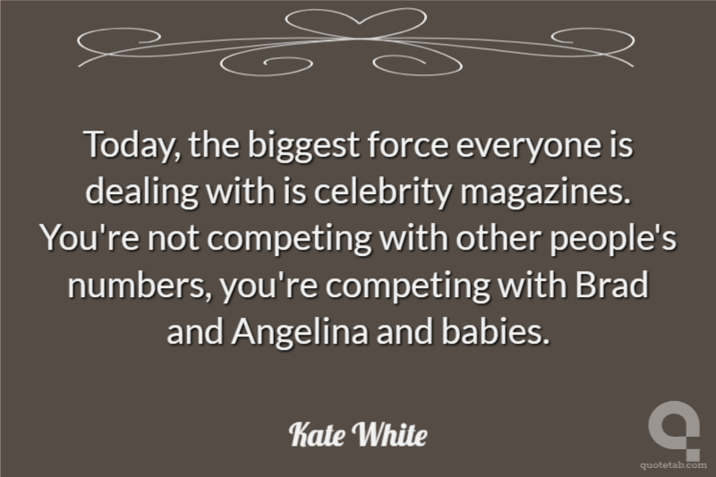 Today, the biggest force everyone is dealing with is celebrity magazines. You're not competing with other people's numbers, you're competing with Brad and Angelina and babies.