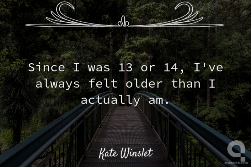 Since I was 13 or 14, I've always felt older than I actually am.