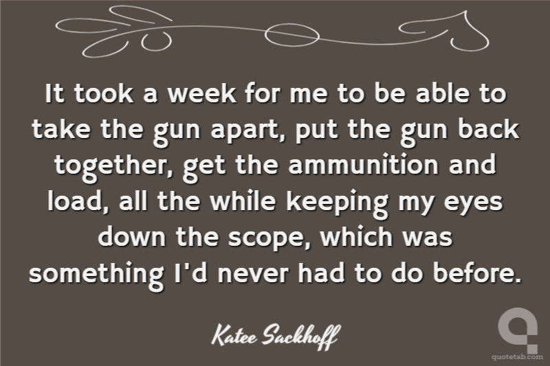 It took a week for me to be able to take the gun apart, put the gun back together, get the ammunition and load, all the while keeping my eyes down the scope, which was something I'd never had to do before.