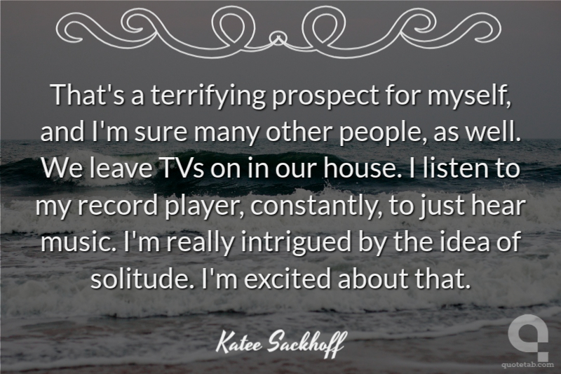 That's a terrifying prospect for myself, and I'm sure many other people, as well. We leave TVs on in our house. I listen to my record player, constantly, to just hear music. I'm really intrigued by the idea of solitude. I'm excited about that.