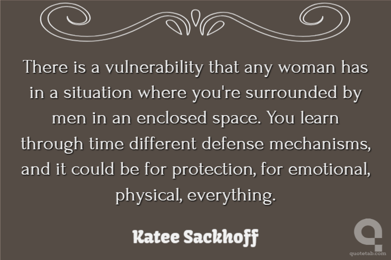 There is a vulnerability that any woman has in a situation where you're surrounded by men in an enclosed space. You learn through time different defense mechanisms, and it could be for protection, for emotional, physical, everything.