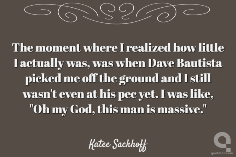 The moment where I realized how little I actually was, was when Dave Bautista picked me off the ground and I still wasn't even at his pec yet. I was like, "Oh my God, this man is massive."