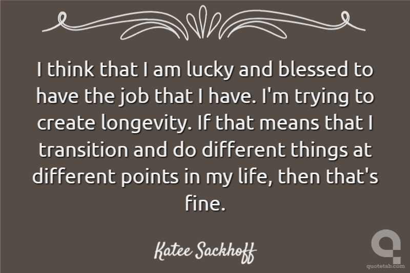 I think that I am lucky and blessed to have the job that I have. I'm trying to create longevity. If that means that I transition and do different things at different points in my life, then that's fine.