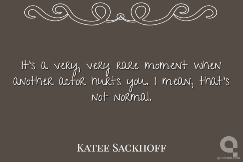 It's a very, very rare moment when another actor hurts you. I mean, that's not normal.