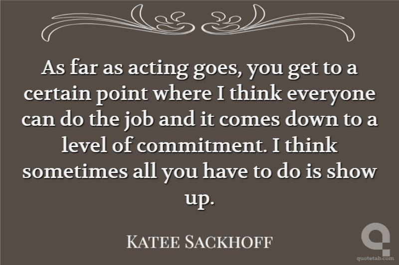 As far as acting goes, you get to a certain point where I think everyone can do the job and it comes down to a level of commitment. I think sometimes all you have to do is show up.
