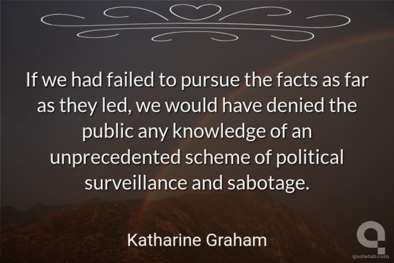 If we had failed to pursue the facts as far as they led, we would have denied the public any knowledge of an unprecedented scheme of political surveillance and sabotage.