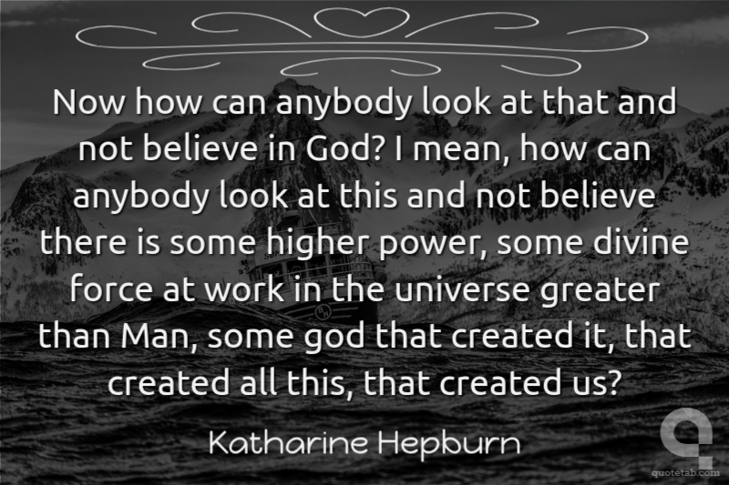Now how can anybody look at that and not believe in God? I mean, how can anybody look at this and not believe there is some higher power, some divine force at work in the universe greater than Man, some god that created it, that created all this, that created us?