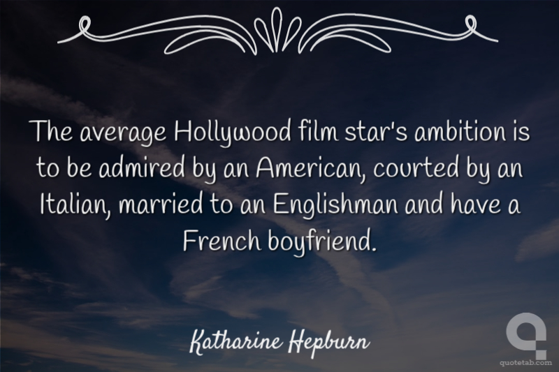 The average Hollywood film star's ambition is to be admired by an American, courted by an Italian, married to an Englishman and have a French boyfriend.