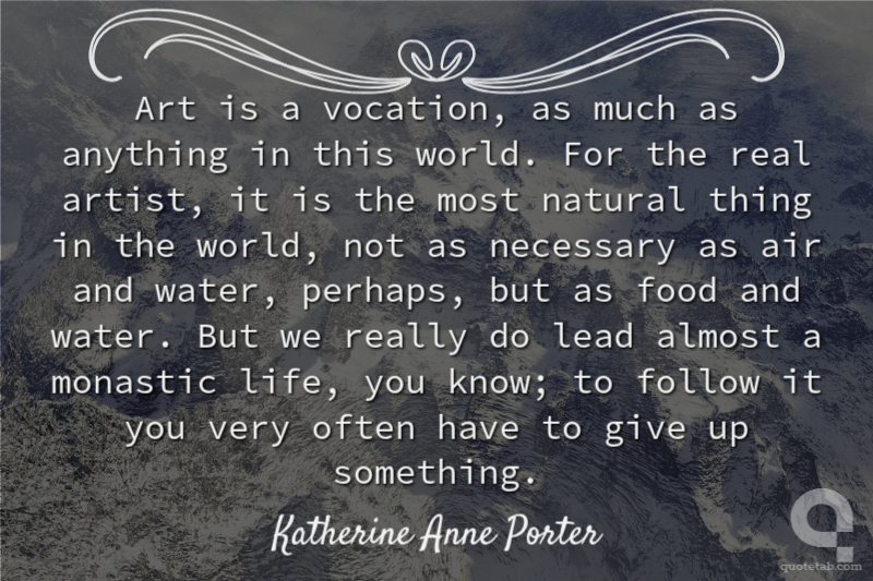 Art is a vocation, as much as anything in this world. For the real artist, it is the most natural thing in the world, not as necessary as air and water, perhaps, but as food and water. But we really do lead almost a monastic life, you know; to follow it you very often have to give up something.