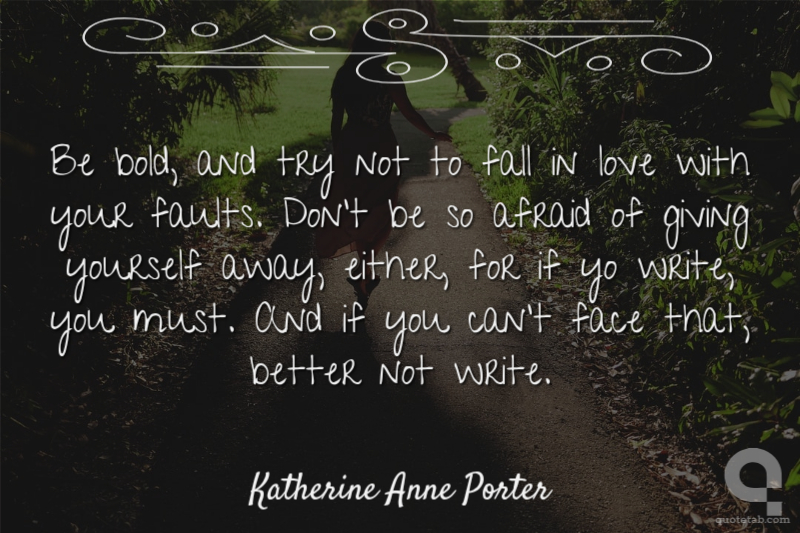 Be bold, and try not to fall in love with your faults. Don't be so afraid of giving yourself away, either, for if yo write, you must. And if you can't face that, better not write.