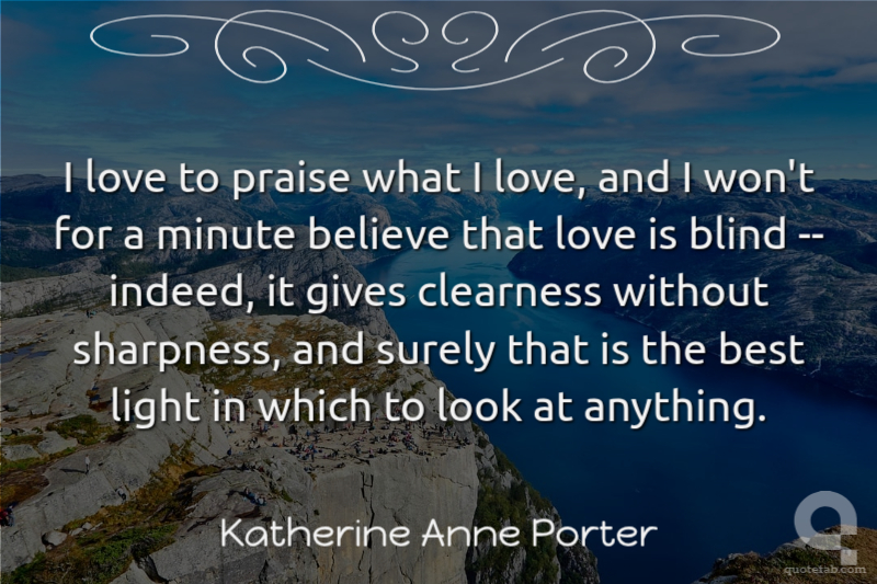 I love to praise what I love, and I won't for a minute believe that love is blind -- indeed, it gives clearness without sharpness, and surely that is the best light in which to look at anything.