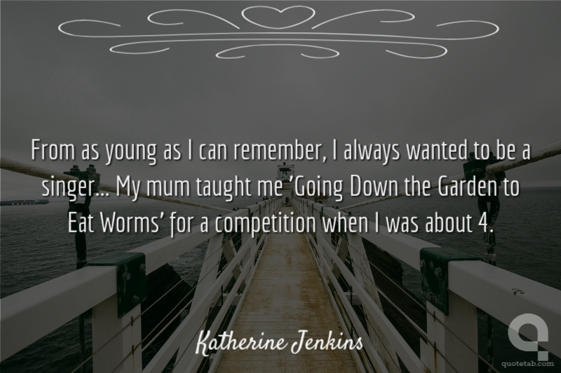 From as young as I can remember, I always wanted to be a singer... My mum taught me 'Going Down the Garden to Eat Worms' for a competition when I was about 4.