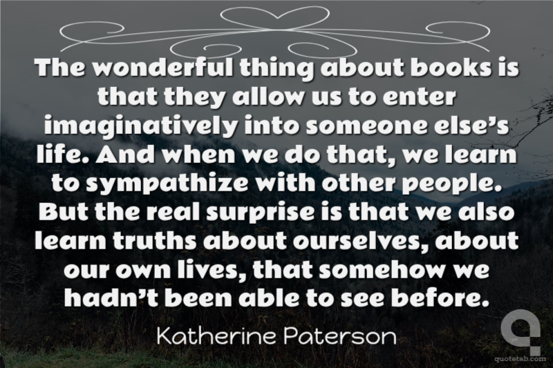 The wonderful thing about books is that they allow us to enter imaginatively into someone else’s life. And when we do that, we learn to sympathize with other people. But the real surprise is that we also learn truths about ourselves, about our own lives, that somehow we hadn’t been able to see before.