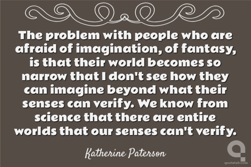 The problem with people who are afraid of imagination, of fantasy, is that their world becomes so narrow that I don't see how they can imagine beyond what their senses can verify. We know from science that there are entire worlds that our senses can't verify.