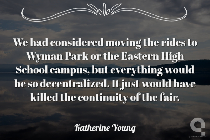 We had considered moving the rides to Wyman Park or the Eastern High School campus, but everything would be so decentralized. It just would have killed the continuity of the fair.