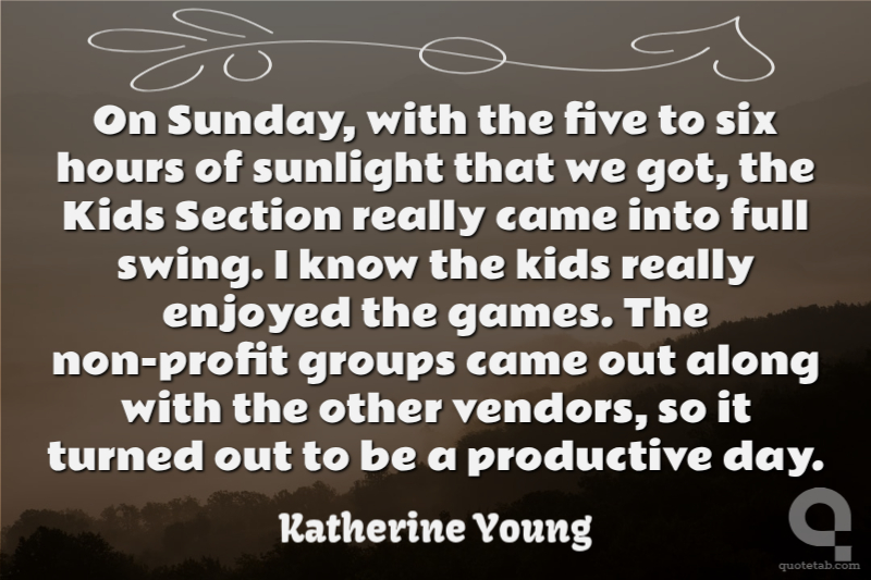 On Sunday, with the five to six hours of sunlight that we got, the Kids Section really came into full swing. I know the kids really enjoyed the games. The non-profit groups came out along with the other vendors, so it turned out to be a productive day.