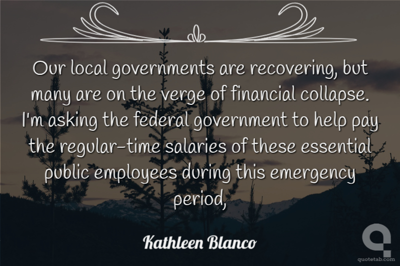 Our local governments are recovering, but many are on the verge of financial collapse. I'm asking the federal government to help pay the regular-time salaries of these essential public employees during this emergency period,