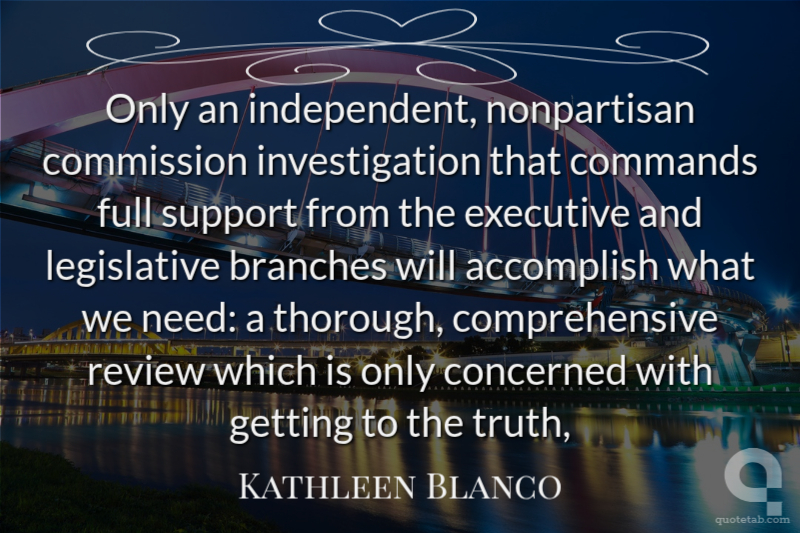 Only an independent, nonpartisan commission investigation that commands full support from the executive and legislative branches will accomplish what we need: a thorough, comprehensive review which is only concerned with getting to the truth,