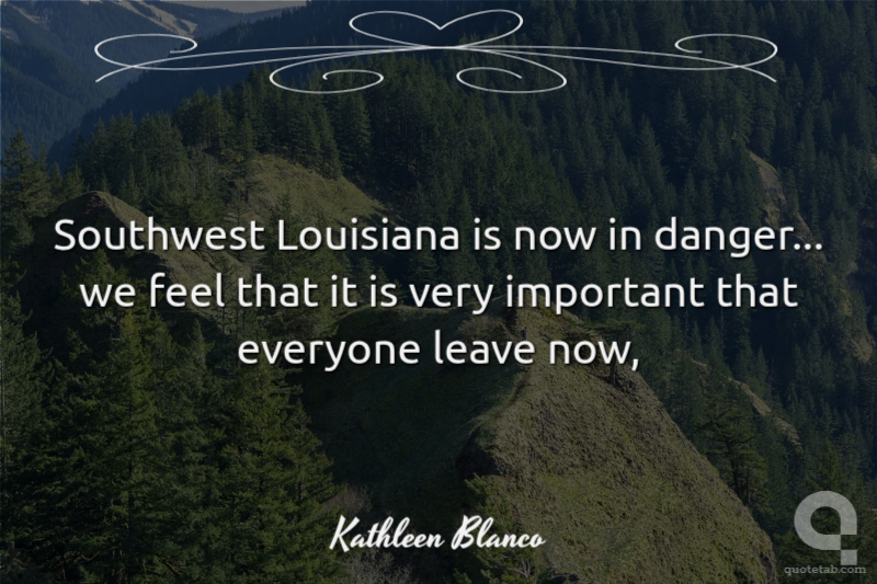 Southwest Louisiana is now in danger... we feel that it is very important that everyone leave now,