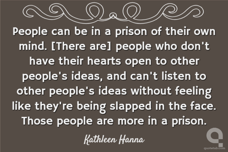 People can be in a prison of their own mind. [There are] people who don't have their hearts open to other people's ideas, and can't listen to other people's ideas without feeling like they're being slapped in the face. Those people are more in a prison.