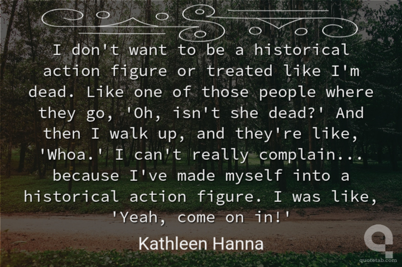 I don't want to be a historical action figure or treated like I'm dead. Like one of those people where they go, 'Oh, isn't she dead?' And then I walk up, and they're like, 'Whoa.' I can't really complain... because I've made myself into a historical action figure. I was like, 'Yeah, come on in!'