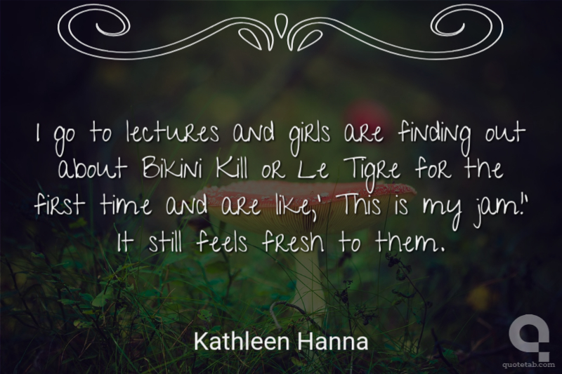 I go to lectures and girls are finding out about Bikini Kill or Le Tigre for the first time and are like,' This is my jam!' It still feels fresh to them.
