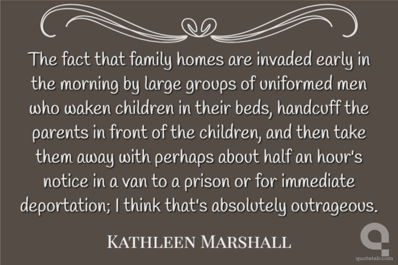 The fact that family homes are invaded early in the morning by large groups of uniformed men who waken children in their beds, handcuff the parents in front of the children, and then take them away with perhaps about half an hour's notice in a van to a prison or for immediate deportation; I think that's absolutely outrageous.