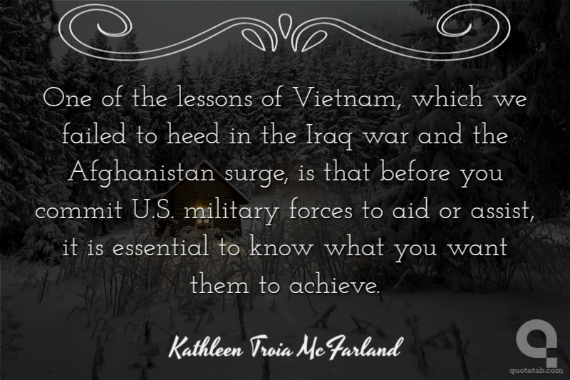 One of the lessons of Vietnam, which we failed to heed in the Iraq war and the Afghanistan surge, is that before you commit U.S. military forces to aid or assist, it is essential to know what you want them to achieve.