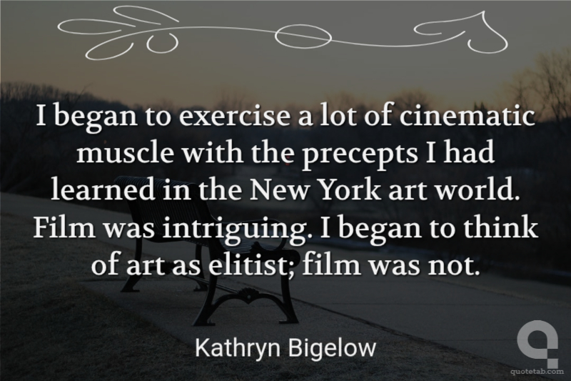I began to exercise a lot of cinematic muscle with the precepts I had learned in the New York art world. Film was intriguing. I began to think of art as elitist; film was not.