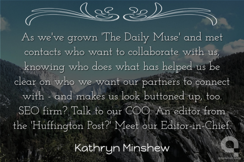 As we've grown 'The Daily Muse' and met contacts who want to collaborate with us, knowing who does what has helped us be clear on who we want our partners to connect with - and makes us look buttoned up, too. SEO firm? Talk to our COO. An editor from the 'Huffington Post?' Meet our Editor-in-Chief.
