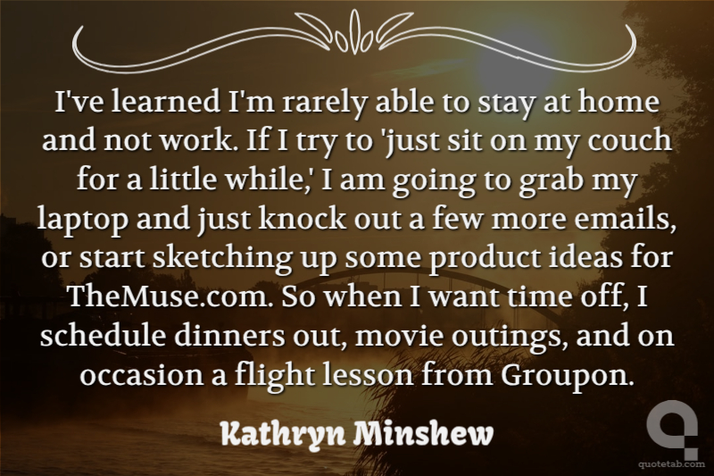 I've learned I'm rarely able to stay at home and not work. If I try to 'just sit on my couch for a little while,' I am going to grab my laptop and just knock out a few more emails, or start sketching up some product ideas for TheMuse.com. So when I want time off, I schedule dinners out, movie outings, and on occasion a flight lesson from Groupon.