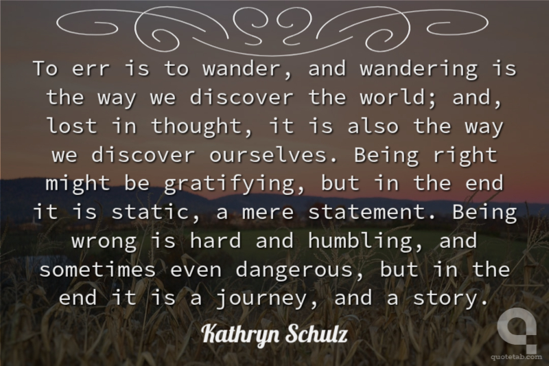 To err is to wander, and wandering is the way we discover the world; and, lost in thought, it is also the way we discover ourselves. Being right might be gratifying, but in the end it is static, a mere statement. Being wrong is hard and humbling, and sometimes even dangerous, but in the end it is a journey, and a story.
