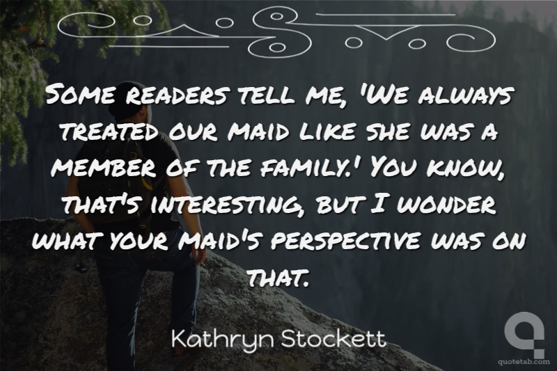 Some readers tell me, 'We always treated our maid like she was a member of the family.' You know, that's interesting, but I wonder what your maid's perspective was on that.