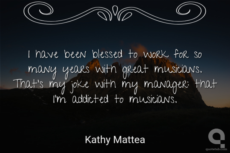 I have been blessed to work for so many years with great musicians. That's my joke with my manager: that I'm addicted to musicians.